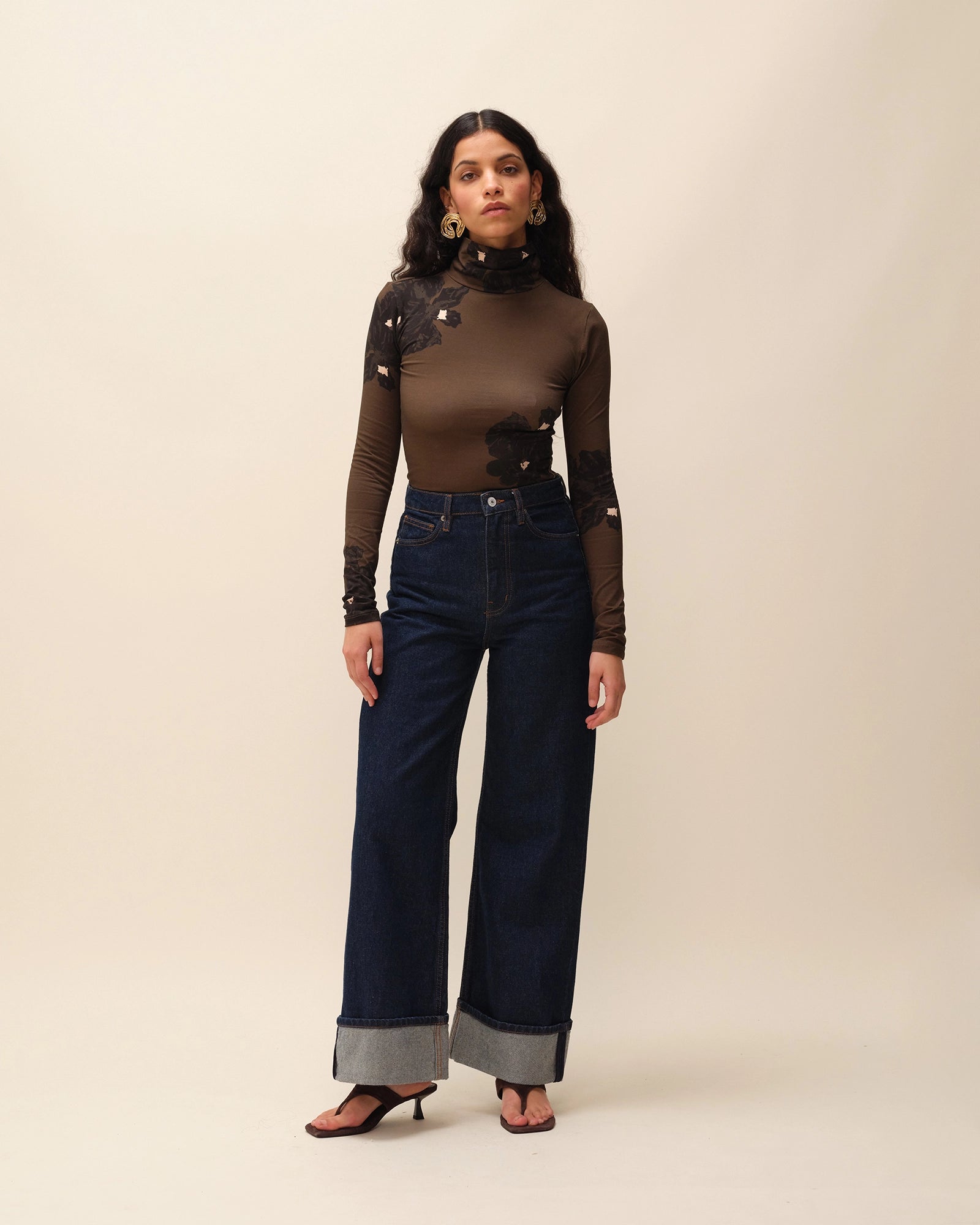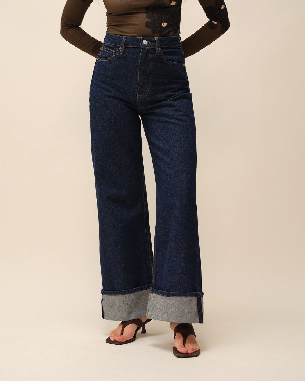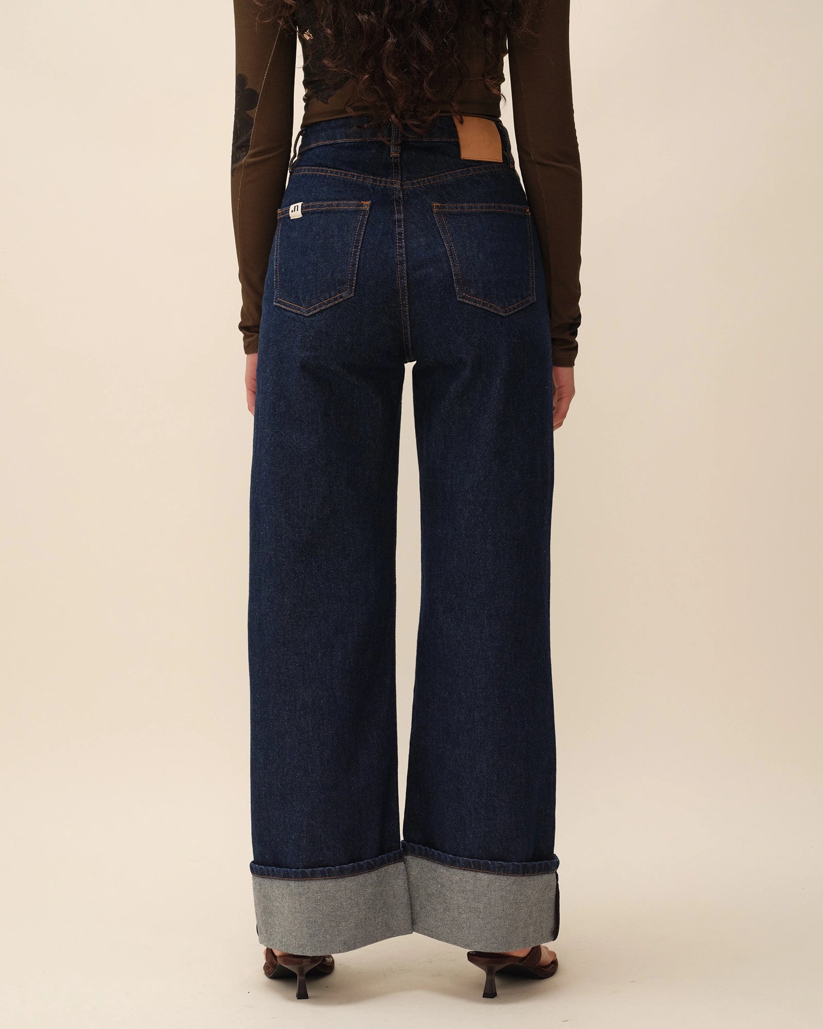 Jean wide leg brut avec revers bas de jambe