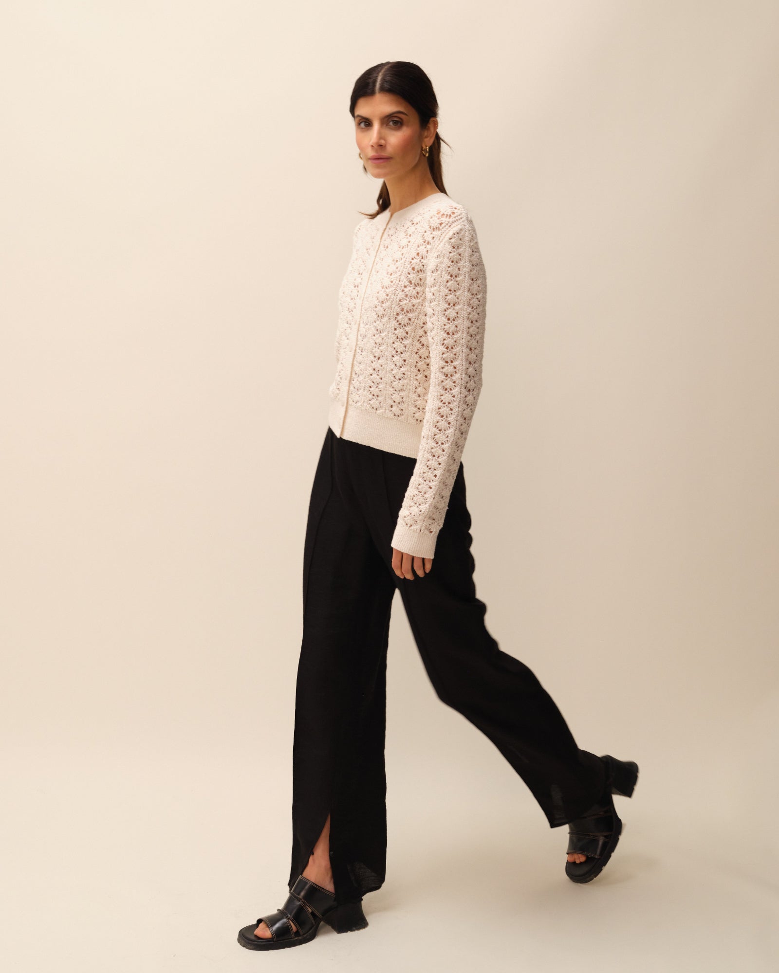 Julia mesure 1m70 et porte une taille 34. Nous vous conseillons de prendre votre taille habituelle.