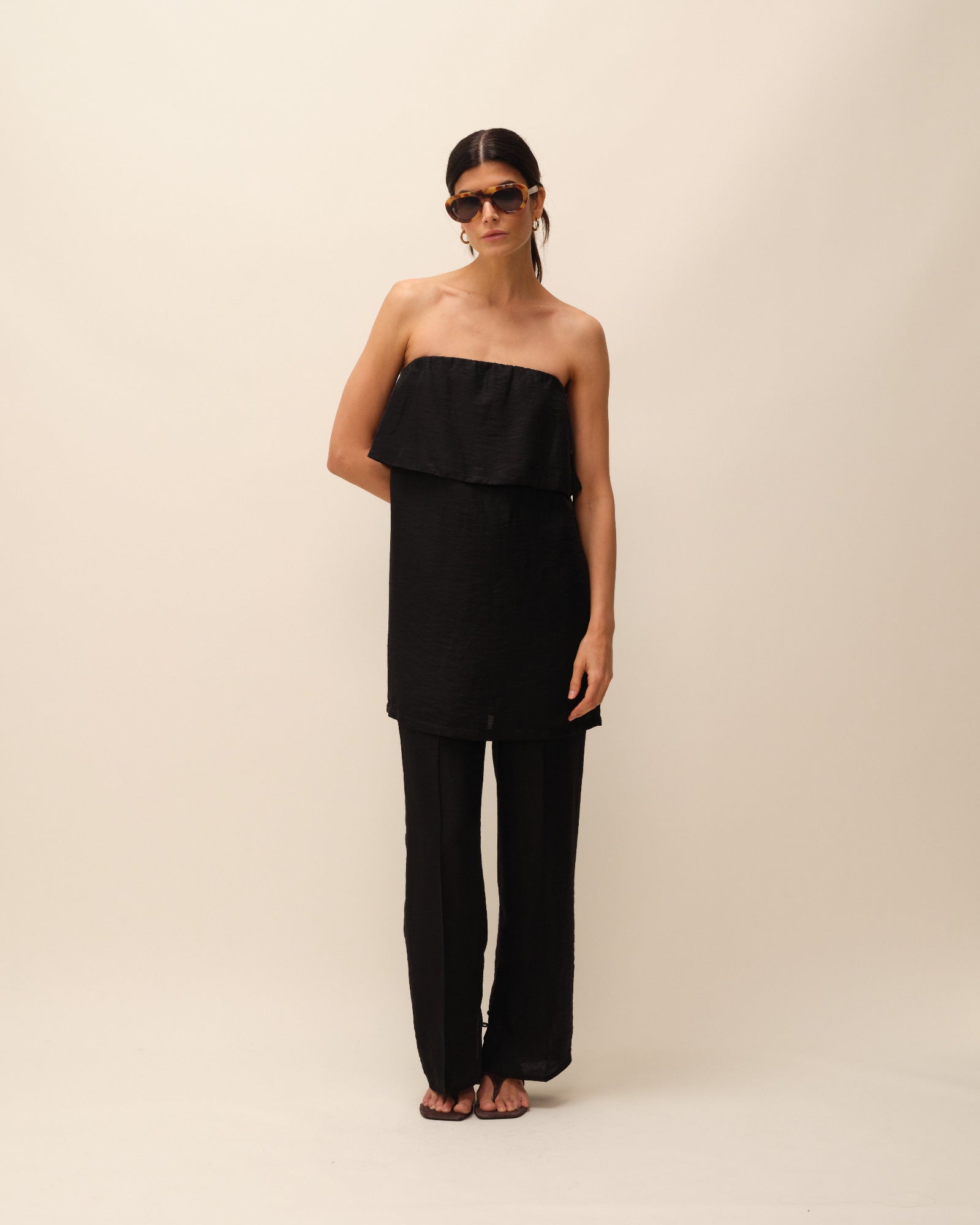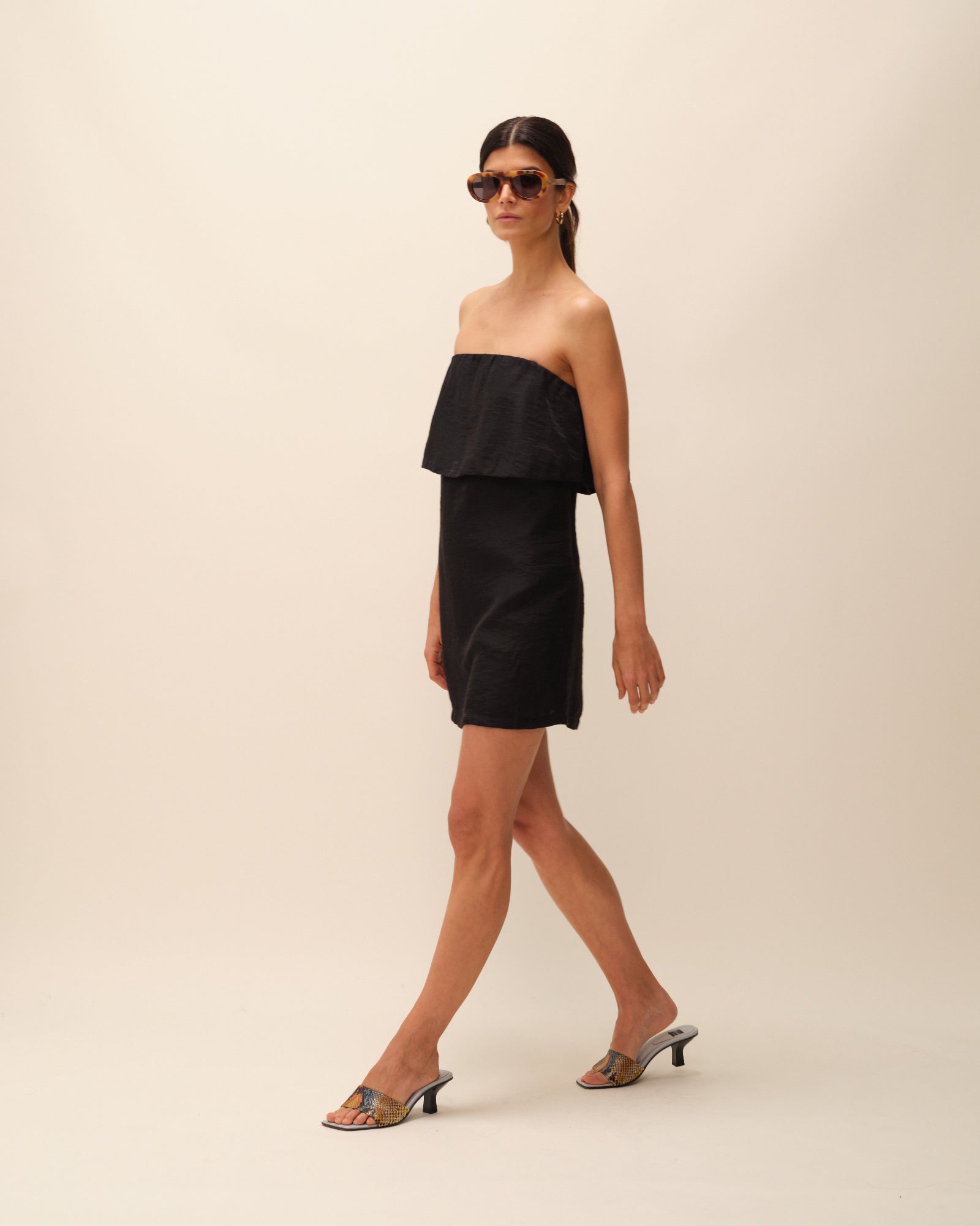 Robe bustier ajustée à bretelles amovibles en lin satiné