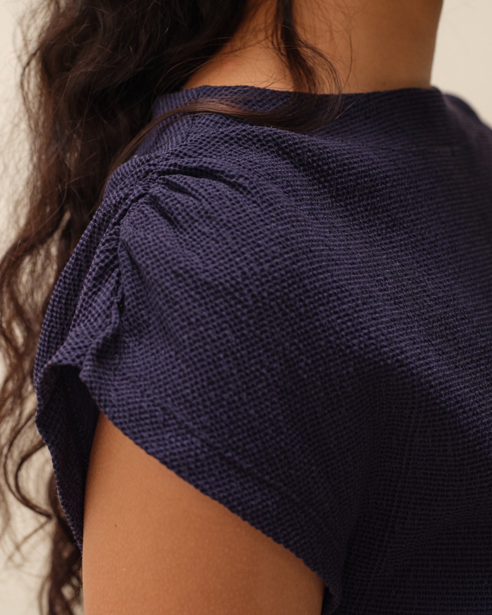 Carla mesure 1m71 et porte une taille S. Nous vous conseillons de prendre votre taille habituelle.