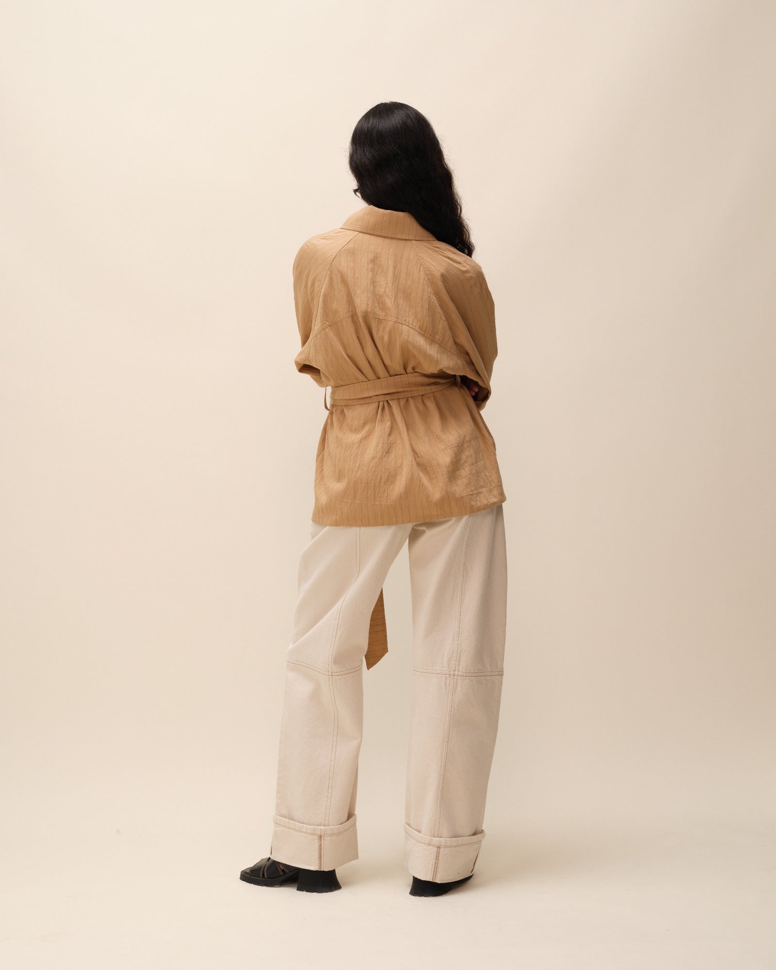 Carla mesure 1m71 et porte une taille S. Nous vous conseillons de prendre votre taille habituelle.