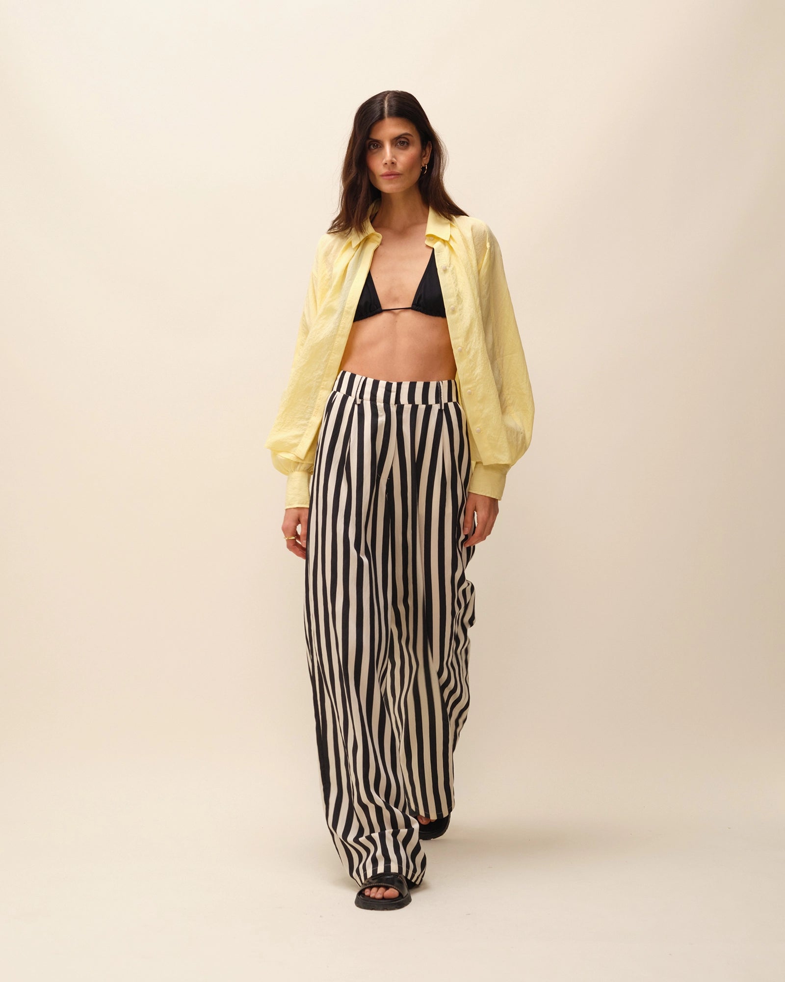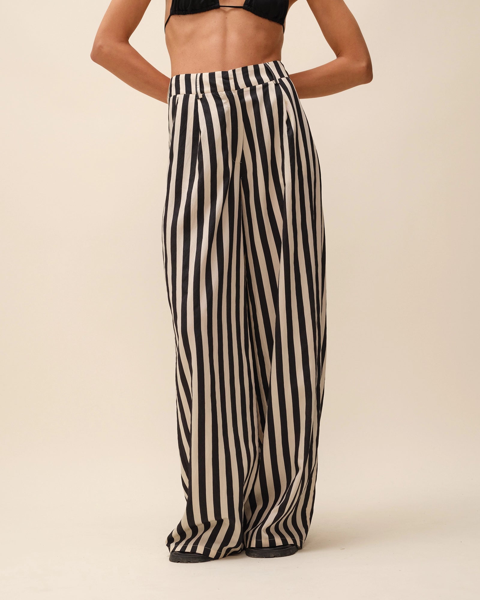 Pantalon très ample taille haute à rayures.