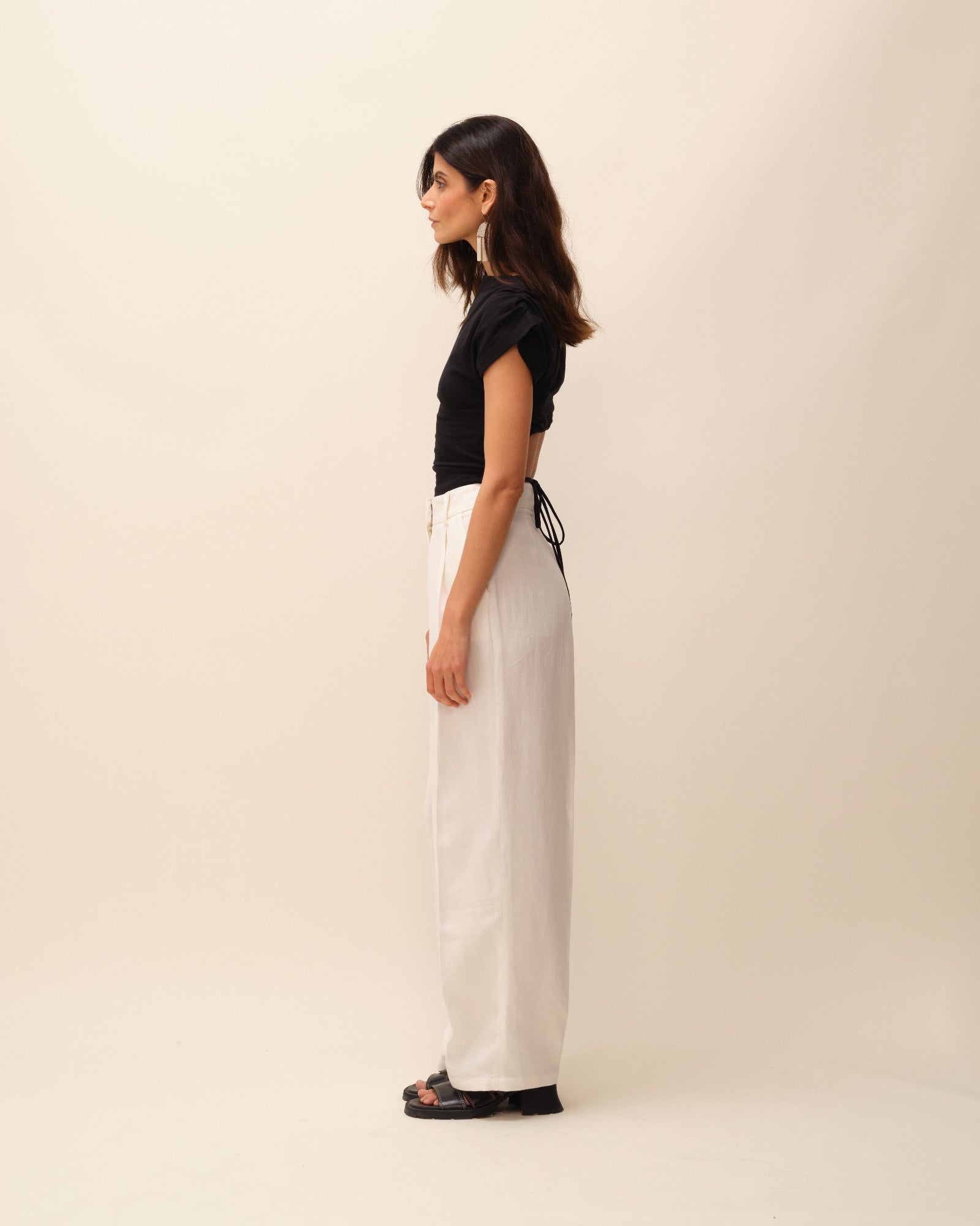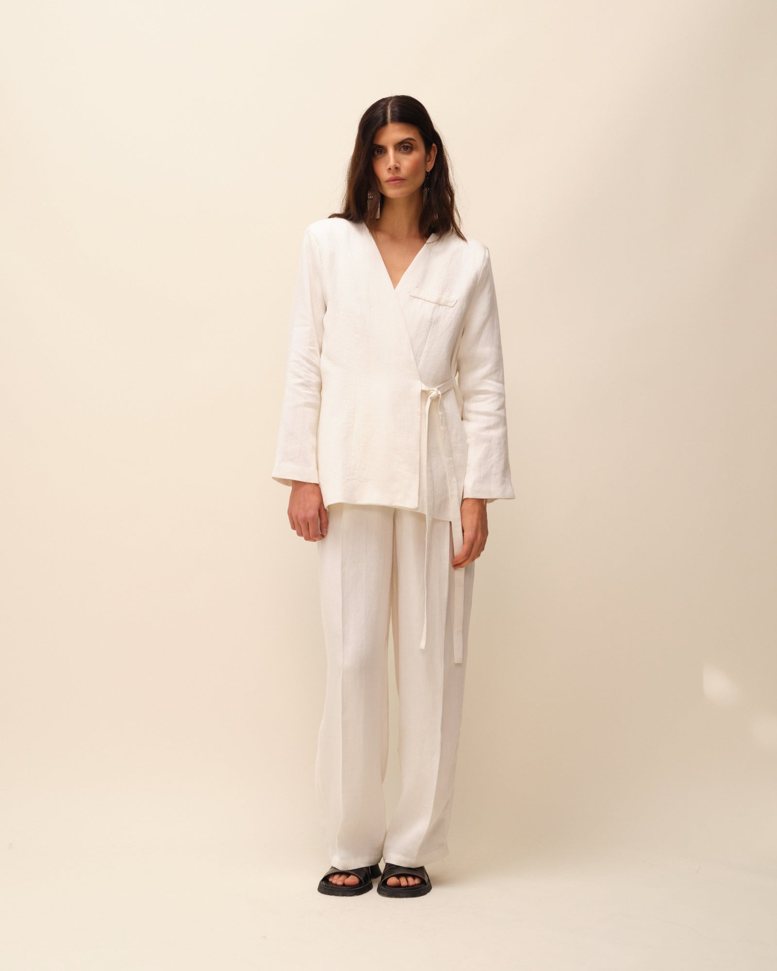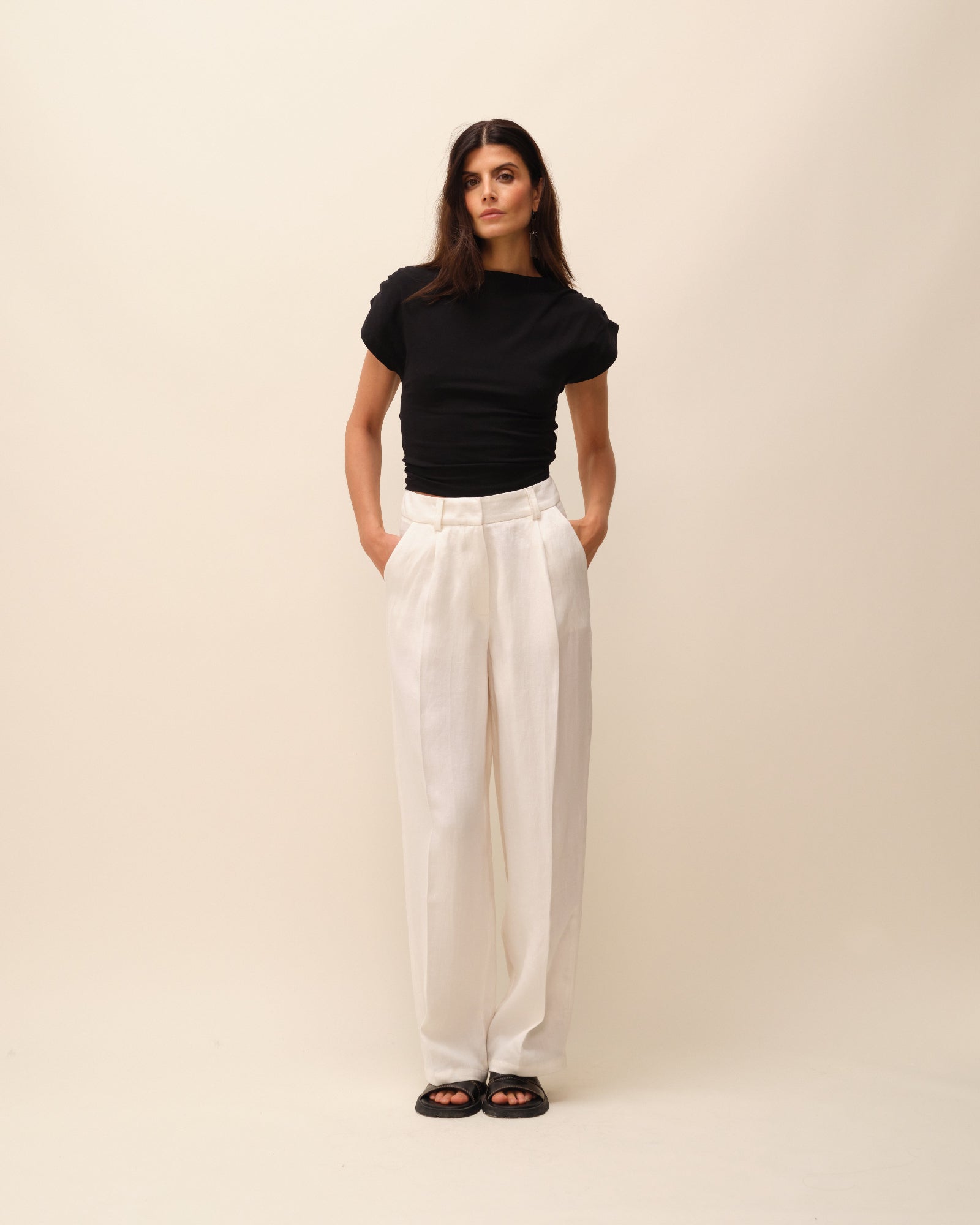 Pantalon tailleur en lin écru